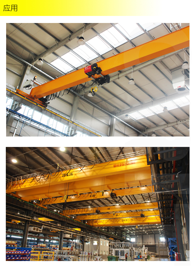 产品名称:单梁桥式起重机 小身材、大能力、高智慧 优化设计,自重轻,轮压小,高度矮 硬齿面柔性驱动,紧凑型结构 变频控制,运行平稳 实时安全监控,确保吊运安全 标准化配置,让性能无比稳定 适用于32t以下额定载荷 标准配置1:起升机构 颠覆传统,自成一体 低净空设计 柔性驱动,内应力小,传动效率高 重级制电机,接电持续率60%ED 行走变频无极调速,运行平稳 自调试电磁盘式制动器,可靠,防尘 2160N/mm² 高强度镀锌钢丝绳,免维护 全周型导绳器,防松绳 全系标配安全监控系统 标准配置2:三合一驱动 静音科技,静享搬运 结构紧凑,铝合金壳体,密封 变频电机+硬齿面减速箱+盘式制动器 三合一集成化设计 全变频调速 最高转速4800 r/min 防护等级IP55 半油脂润滑,免维护 静音科技,静享搬运 标准配置3:电控系统 安全随心掌控 智能安全监控器 计算起升机构剩余安全工作时间 累计起升工作时间 累计超载次数 累计起升电机启动次数 起升电机过热保护及报警 刹车片厚度报警 ... ... 远程通讯 施耐德电气元件 航空插座接口 IP55防护等级 标准配置4:端梁 多变灵活,适应自如 模块化直驱设计 自重轻、体积小 多种连接方式,安装尺寸灵活 适用各种厂房,降低厂房高度 QT700车轮,自润滑,更静音 采用调心轴承,适应更自如 应用
